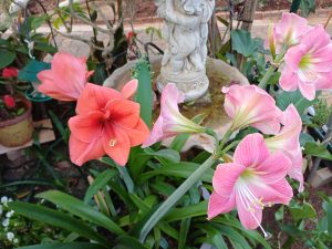 | September is Amarilla blom tyd. Van die inwoners in die Oord s’n is geen uitsondering en was lustig aan die blom! So ook die Clivias (Boslelies). Die winter was gou verby en voor ons mooi kon kyk was die lelies aan die blom die hele Oord vol. Selfs rare (Groen varkore, Karoo Lelie en Lidrose) met baie mooi blomme! |